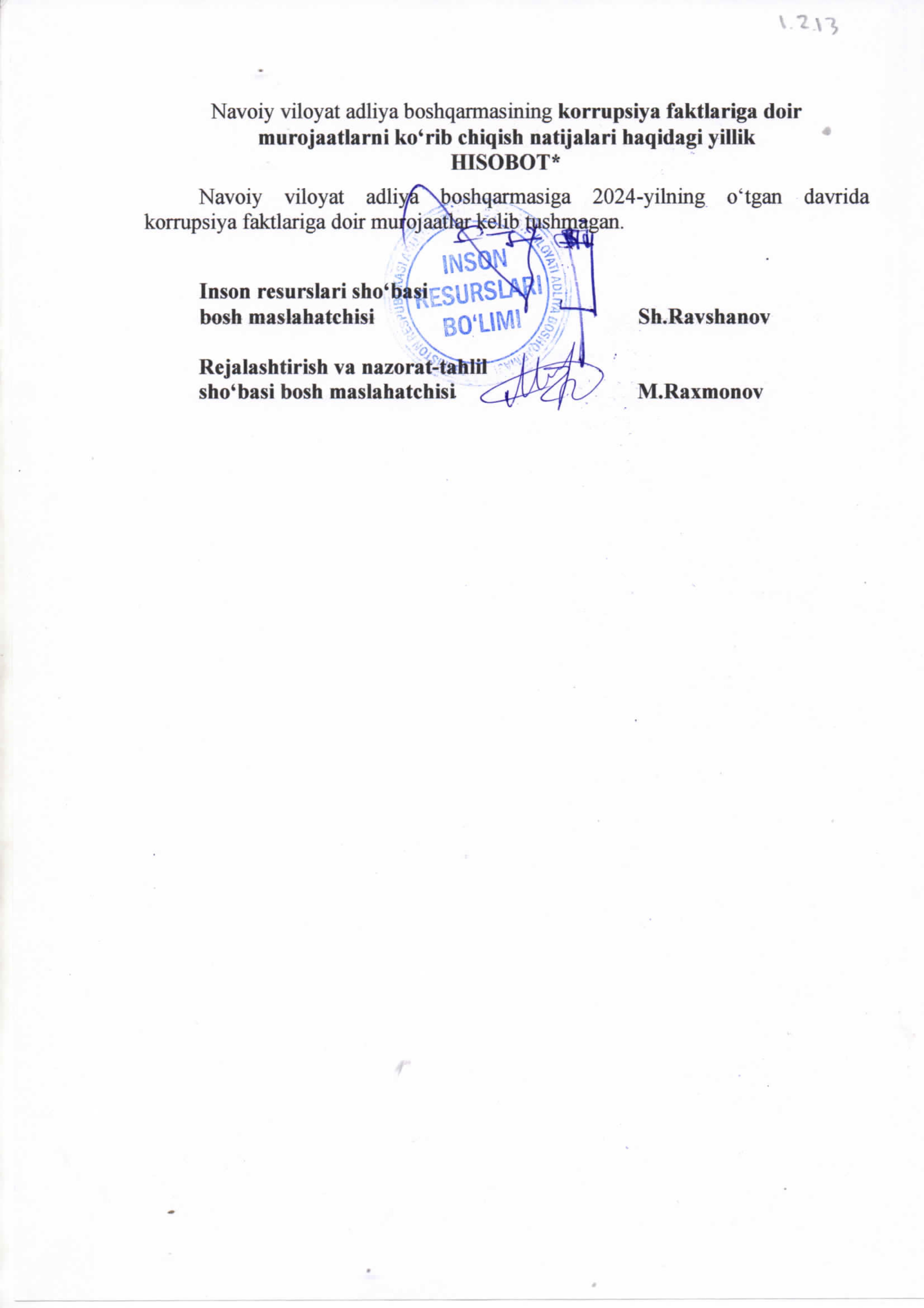 Korrupsiya faktlariga doir murojaatlarni ko'rib chiqish natijalari