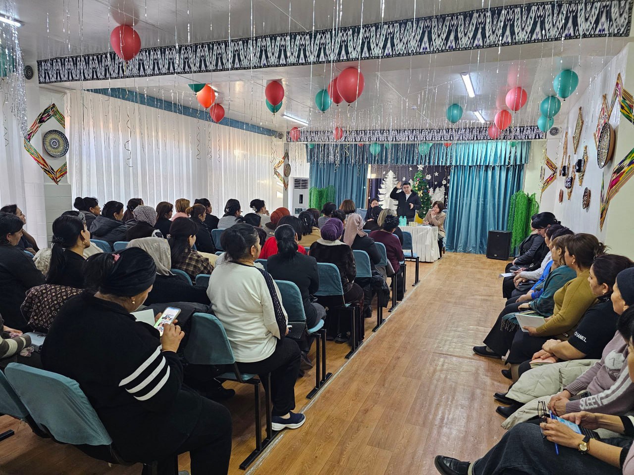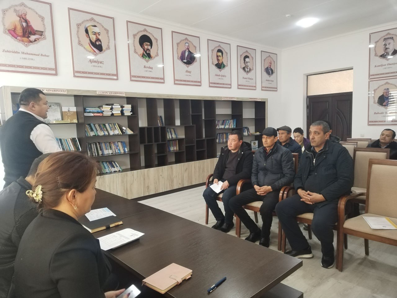 Унда туман ҳокими ўринбосари Н.Муратов, туман адлия бўлими бошлиғи У.Тўраев, “Маънавият ва маърифат” бўлинмаси туман раҳбари Ж.Булекбаева, туман “Нуроний” жамғармаси раиси И.Рахимов туман “Маҳала уюшмаси” бўлими бошлиғи А.Ҳамидов ҳамда халқ депутатлари туман кенгаши депутатлари М.Камолова, Г.Аллановалар иштирок этмоқда.